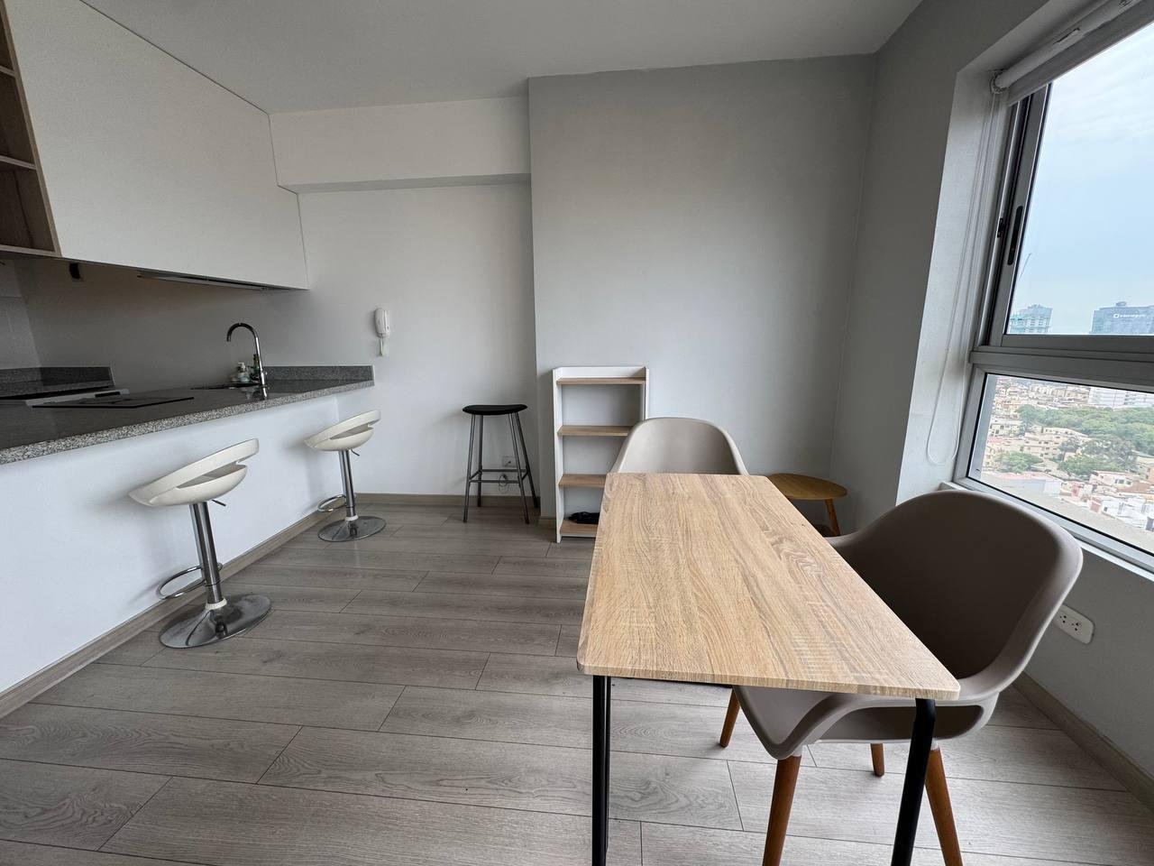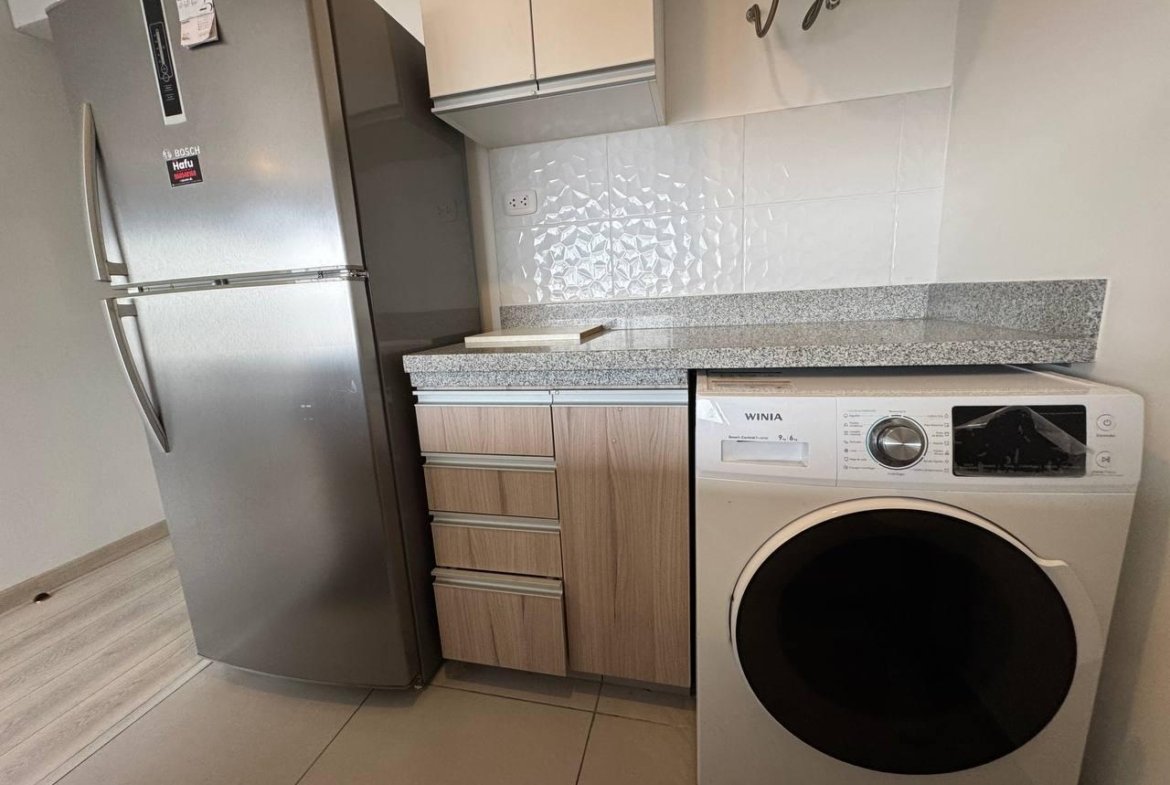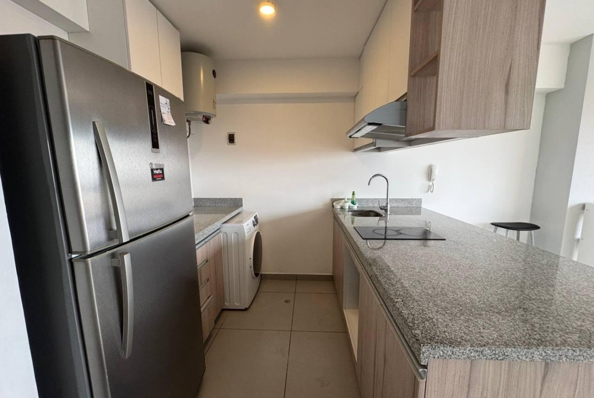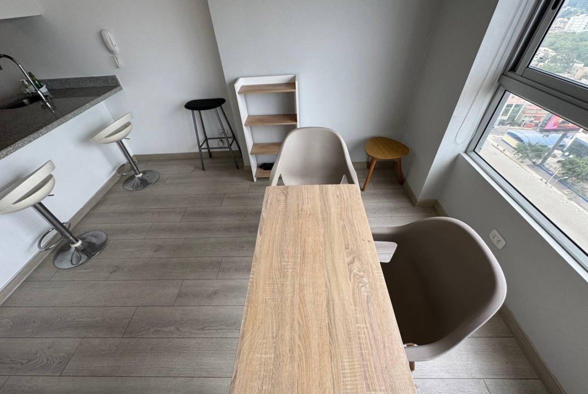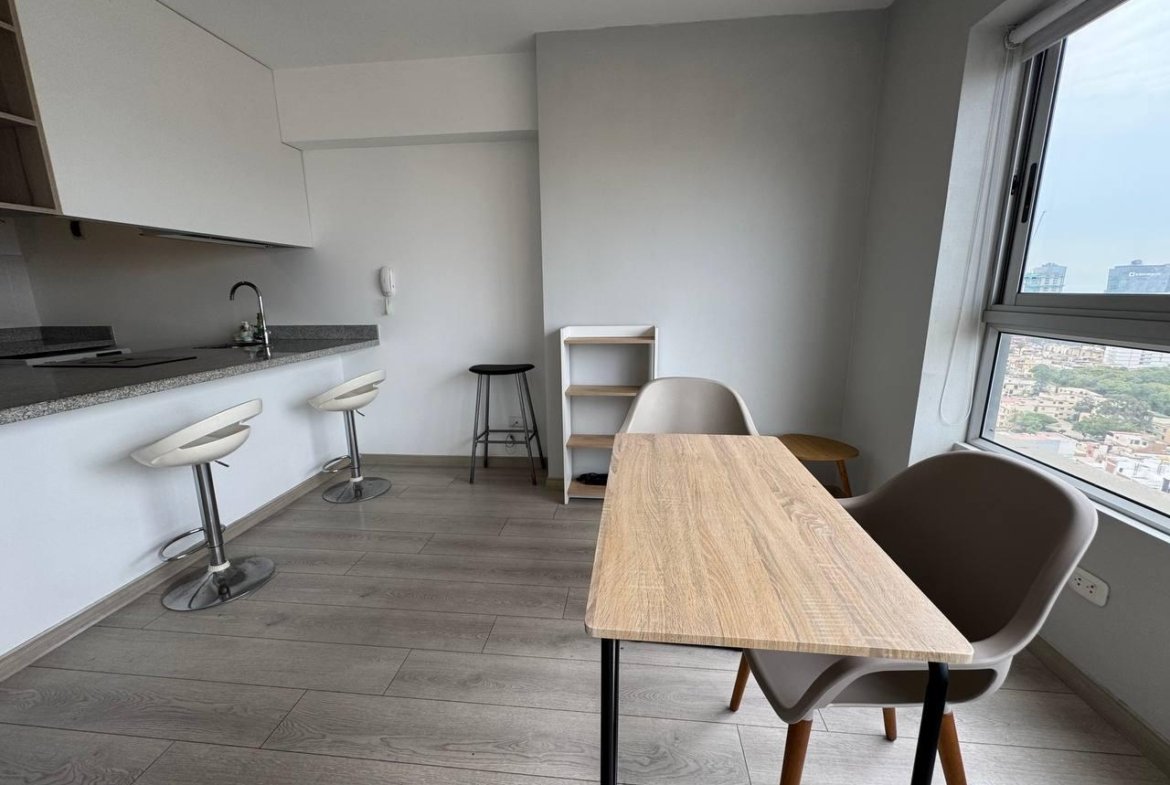 Presentamos un exclusivo departamento tipo loft amoblado en el piso 21, ubicado en la vibrante zona de Santa Catalina, Lima, limete SAN ISIDRO Este luminoso espacio de 35 m² ofrece un diseño moderno y funcional, ideal para quienes buscan comodidad y estilo en un solo ambiente. El departamento cuenta con un ambiente integrado que incluye una cocina equipada con vitrocerámica y campana extractora, refrigeradora, horno microondas, terma eléctrica, y lavaseca. El área de descanso está amoblada con una cama de 2 plazas con tarima y cajones, además de cortinas black-out tipo roller que garantizan privacidad.